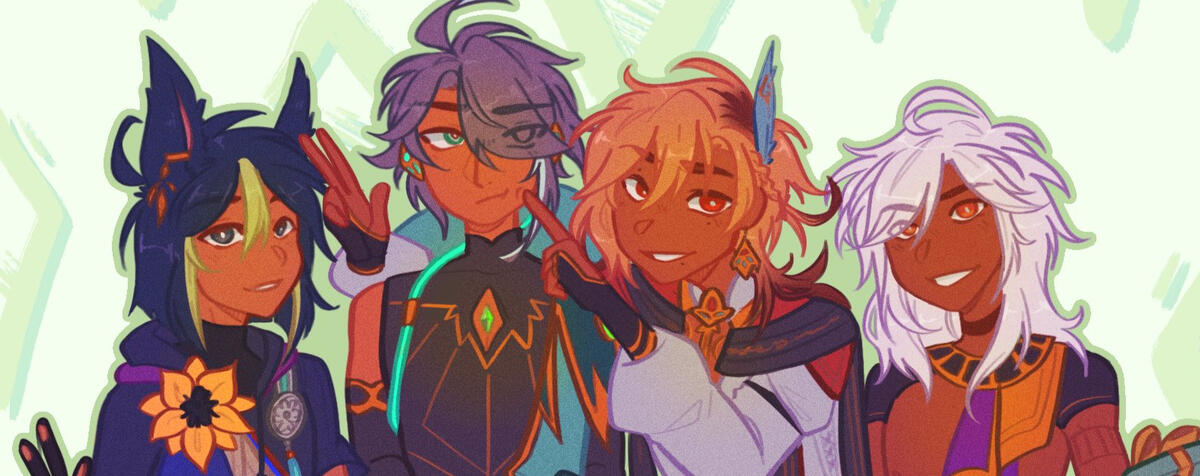 | you may notice a trend here. kaveh, a fellow overcritical artist, he’s just such a tragic but beautifully written character. aventurine, something about the dichotomy of a character “born with luck” to have such a tragic upbringing is so intriguing to me. and hugo, even though he came up in such a brutal way, he presents himself as someone who is completely careful and confident. akechi, who isn’t innocent, but you also see his upbringing and you don’t fully blame him for being so cruel either. poor boy just wanted some damn justice. michael afton, i love my family-trauma coded characters and the older sibling guilt is so real, i love his character so much |